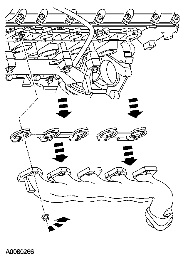 ^ Remove and discard the RH exhaust manifold gaskets.
