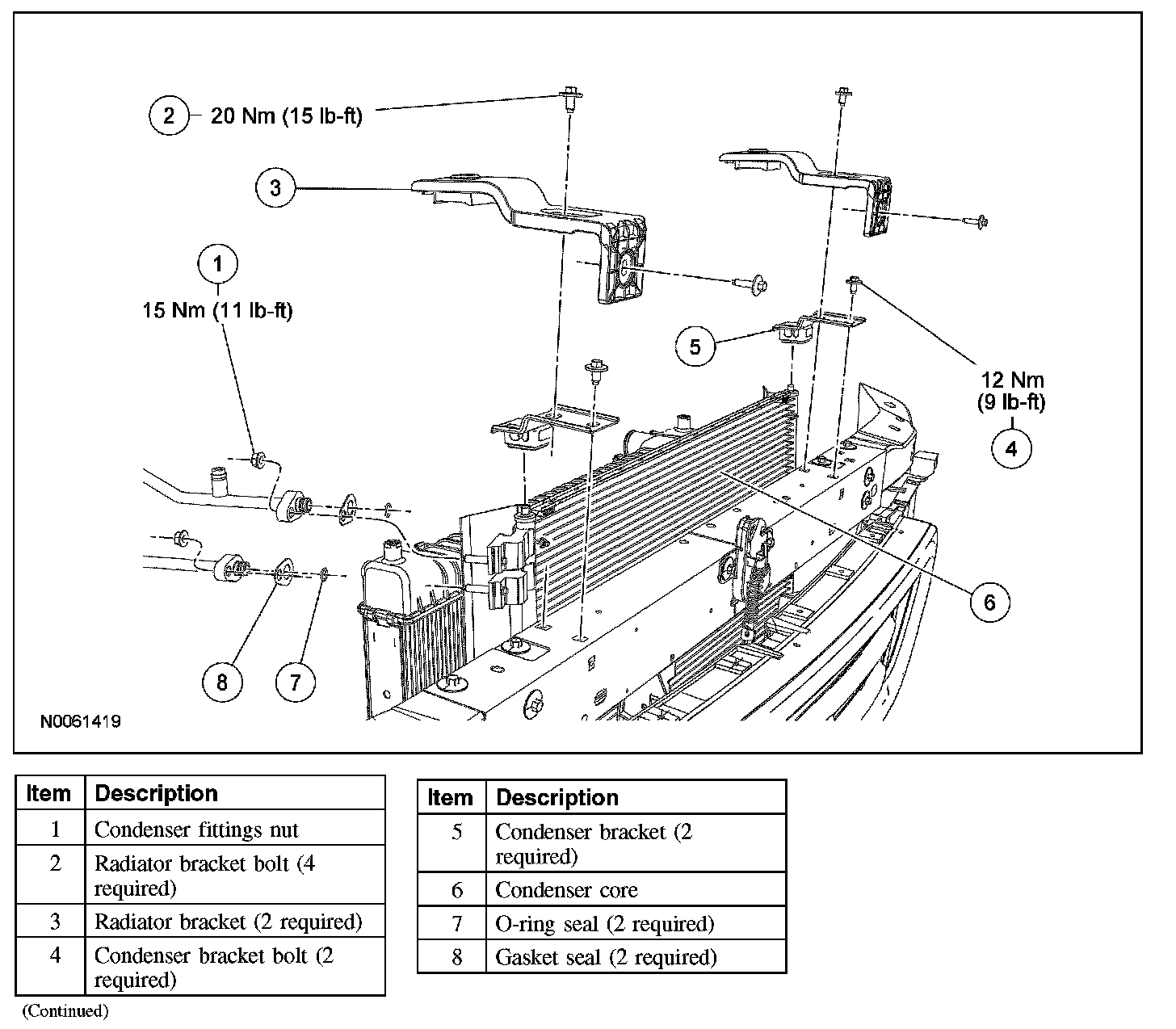 7. Position the radiator rearward to provide clearance for condenser removal.