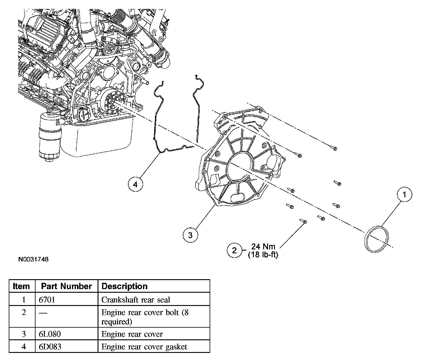 5. NOTE: The crankshaft rear seal and wear sleeve are installed as an assembly.