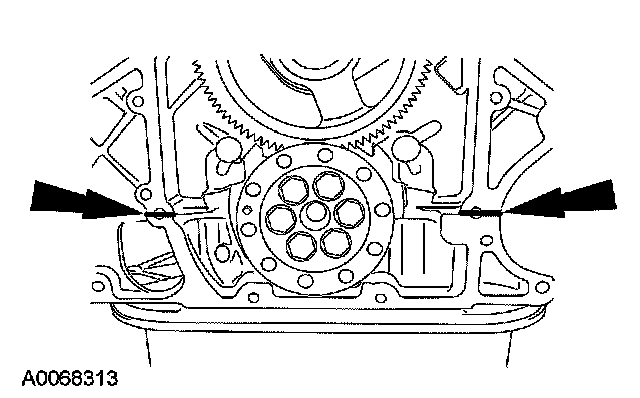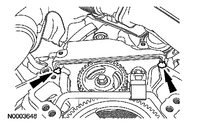 10. CAUTION: To prevent engine damage, replace damaged or missing dowel pins before installing the rear engine cover.