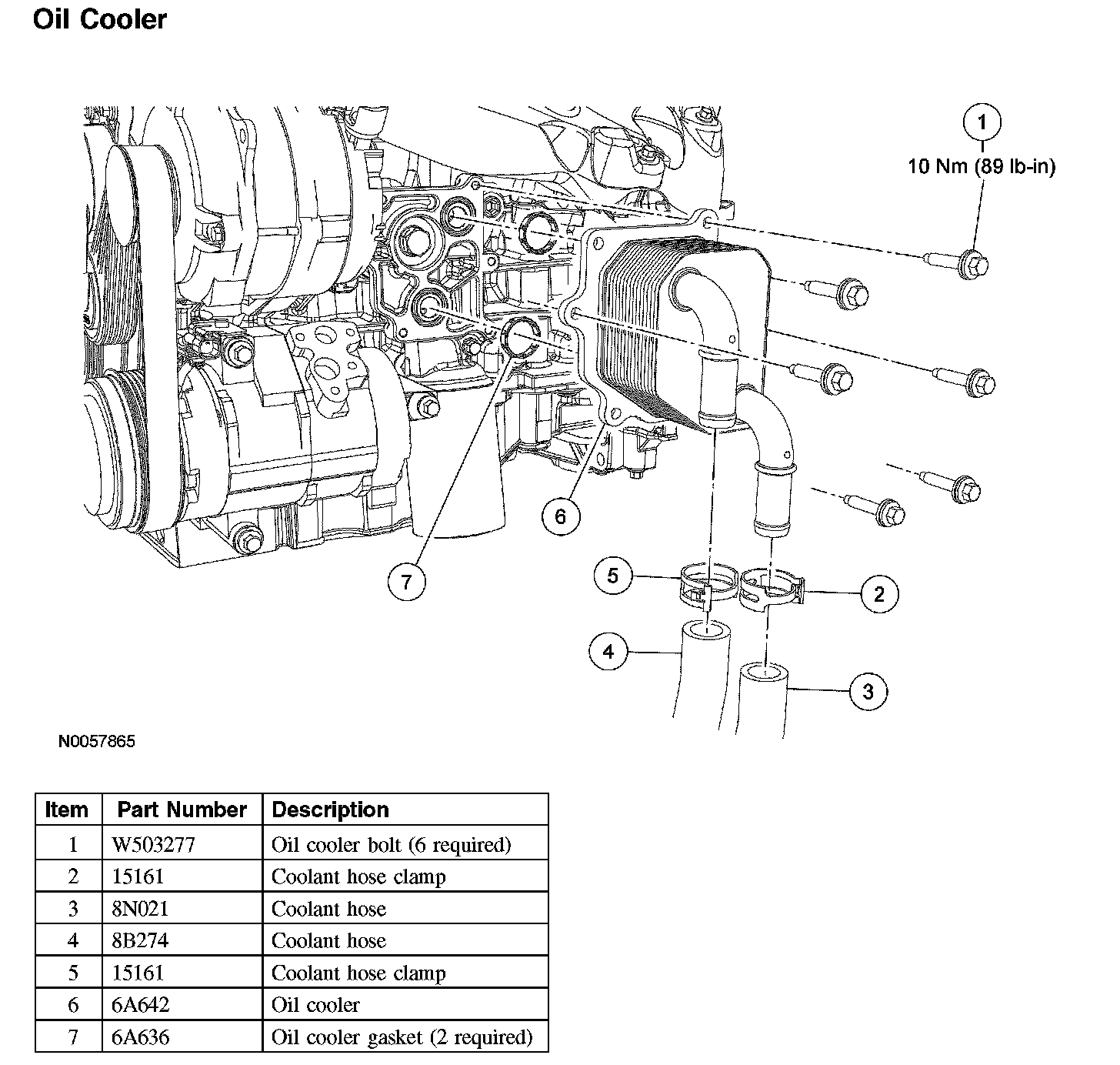 1. Using new gaskets, install the oil cooler and the 6 bolts.
