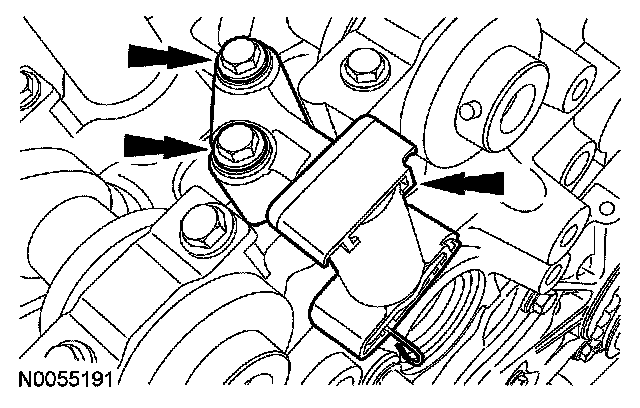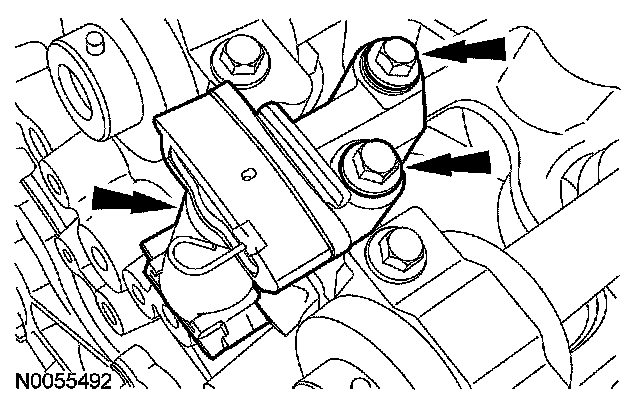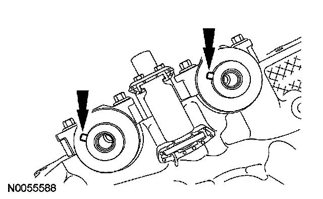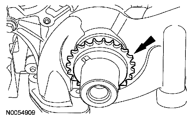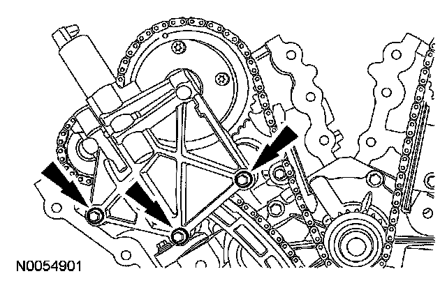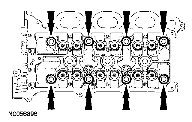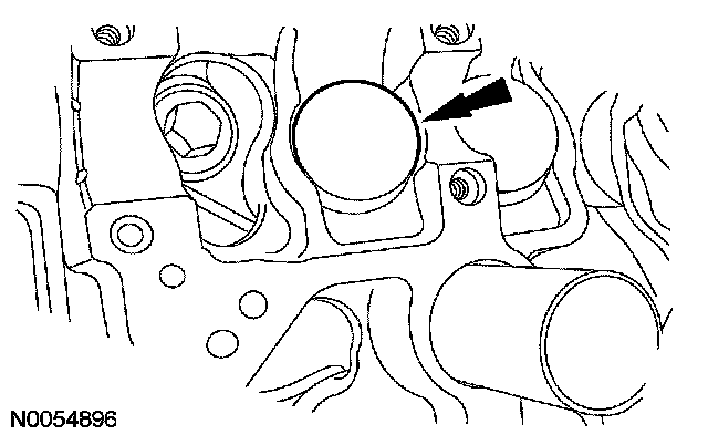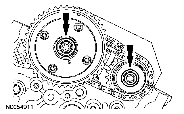 105. NOTE: The VCT bolt and the exhaust camshaft bolt must be discarded and new ones installed. However, the exhaust camshaft washer is reusable.