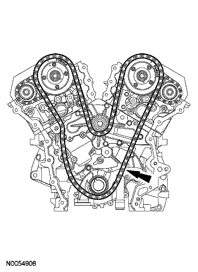 ^ Remove the RH VCT assembly, secondary timing chain and the RH exhaust camshaft sprocket as an assembly.