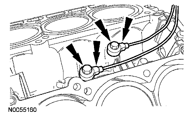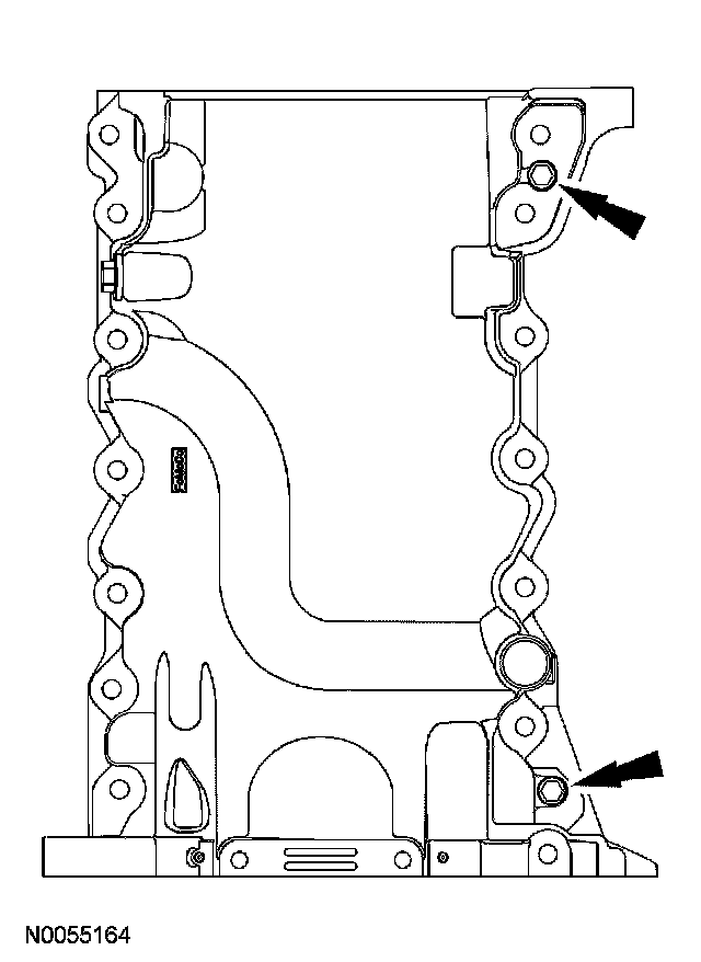 1 Alternately tighten the 2 bolts one turn at a time until the oil pan-to-cylinder block seal is released.