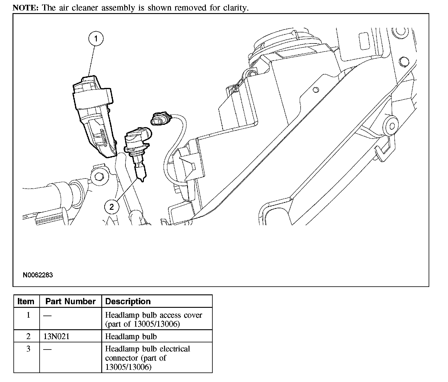 1. Remove the headlamp bulb access cover.