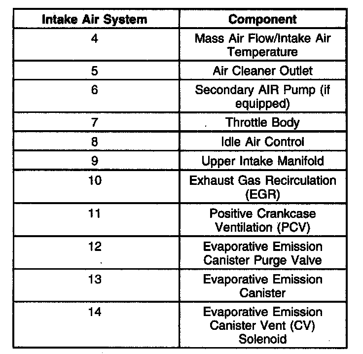 The intake air system provides clean air to the engine, optimizes air flow, and reduces unwanted induction noise. The intake air system consists of an air cleaner assembly, resonator assemblies, and hoses. Some vehicles use a hydrocarbon filter trap to help reduce emissions by preventing fuel vapor from escaping into the atmosphere from the intake when the engine is off. It is typically located inside the air intake system. The mass air flow (MAF) sensor is attached to the air cleaner assembly and measures the volume of air delivered to the engine. The hydrocarbon trap is part of the EVAP system. For more information on the EVAP system, refer to Evaporative Emission (EVAP) Systems. The MAF sensor can be replaced as an individual component. The intake air system also contains a sensor that measures the intake air temperature (IAT), which is also integrated with the MAF sensor. Intake air components can be separate components or part of the intake air housing. The function of a resonator is to reduce induction noise. The intake air components are connected to each other and to the throttle body assembly with hoses.