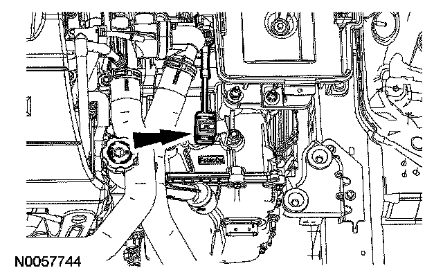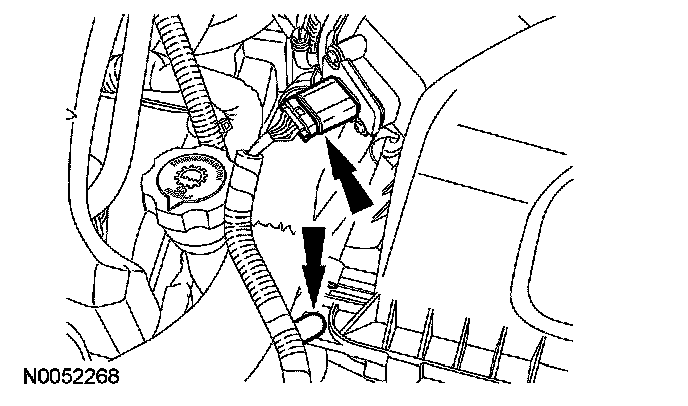 1. Disconnect the mass air flow (MAF) sensor electrical connector and the wiring harness fastener from the air cleaner assembly.