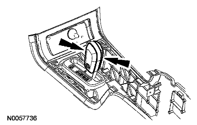 4. Remove and discard the selector lever knob trim covers by carefully prying out on the bottom front corners and then pry out on the top front corner and remove the covers.