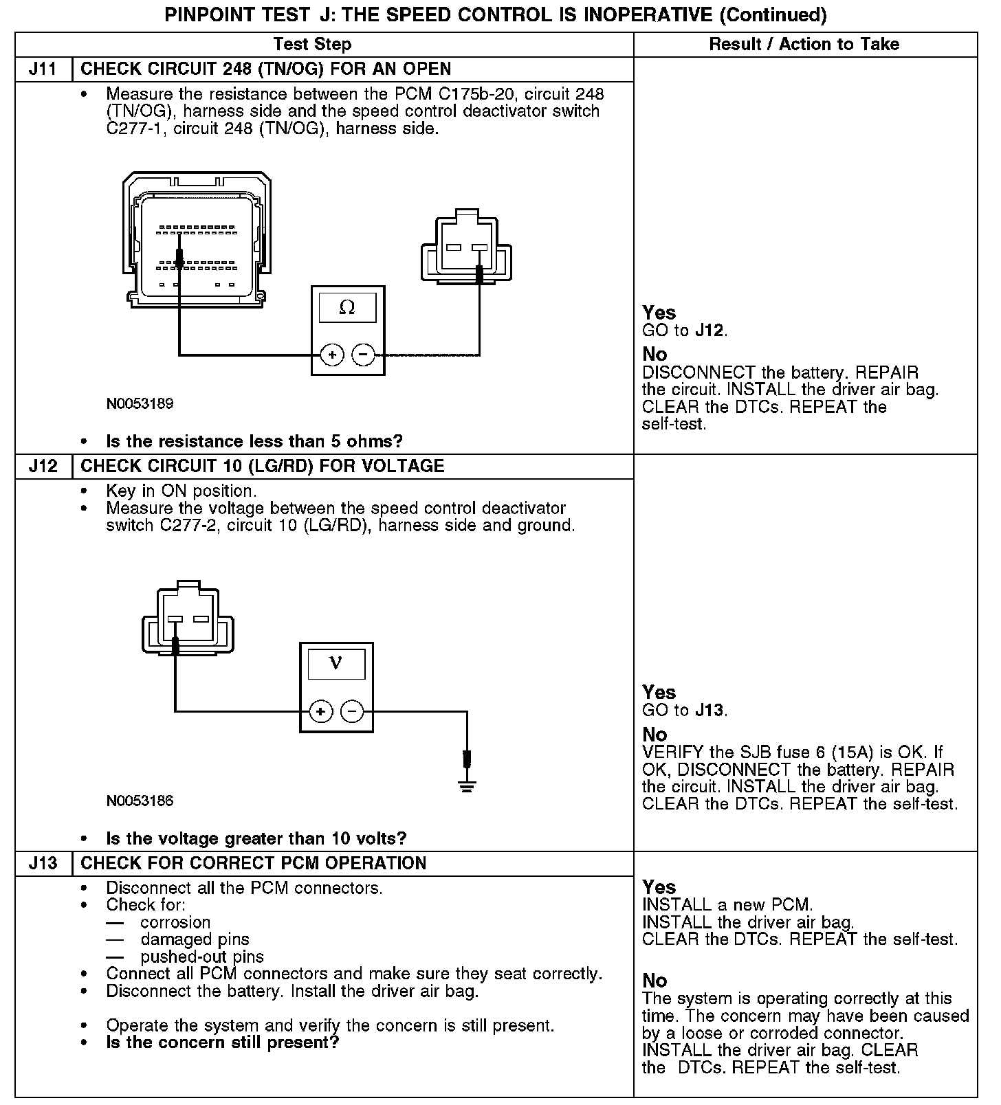 PINPOINT TEST J: THE SPEED CONTROL IS INOPERATIVEJ1: