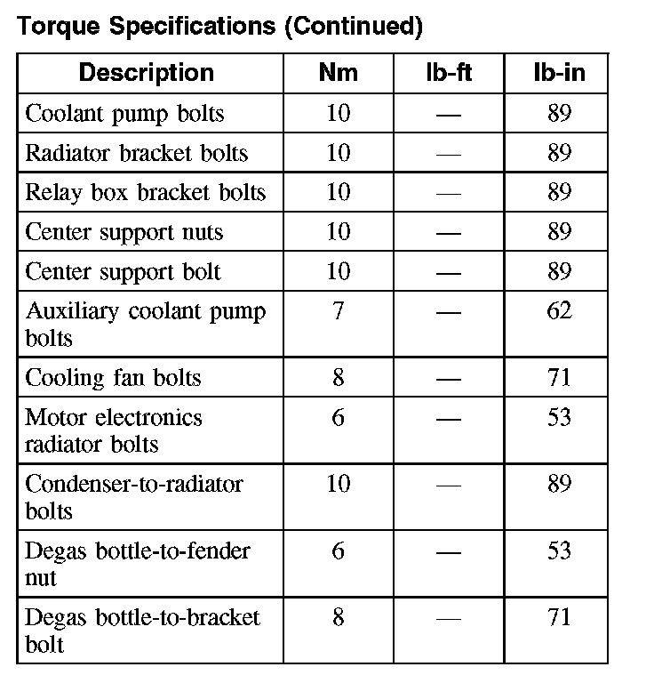 Torque Specifications (Part 1):