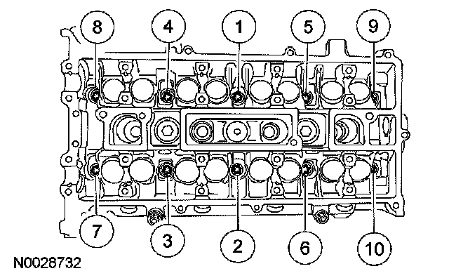 The cylinder head bolts are torque-to-yield and must not be reused. New cylinder head bolts must be installed.