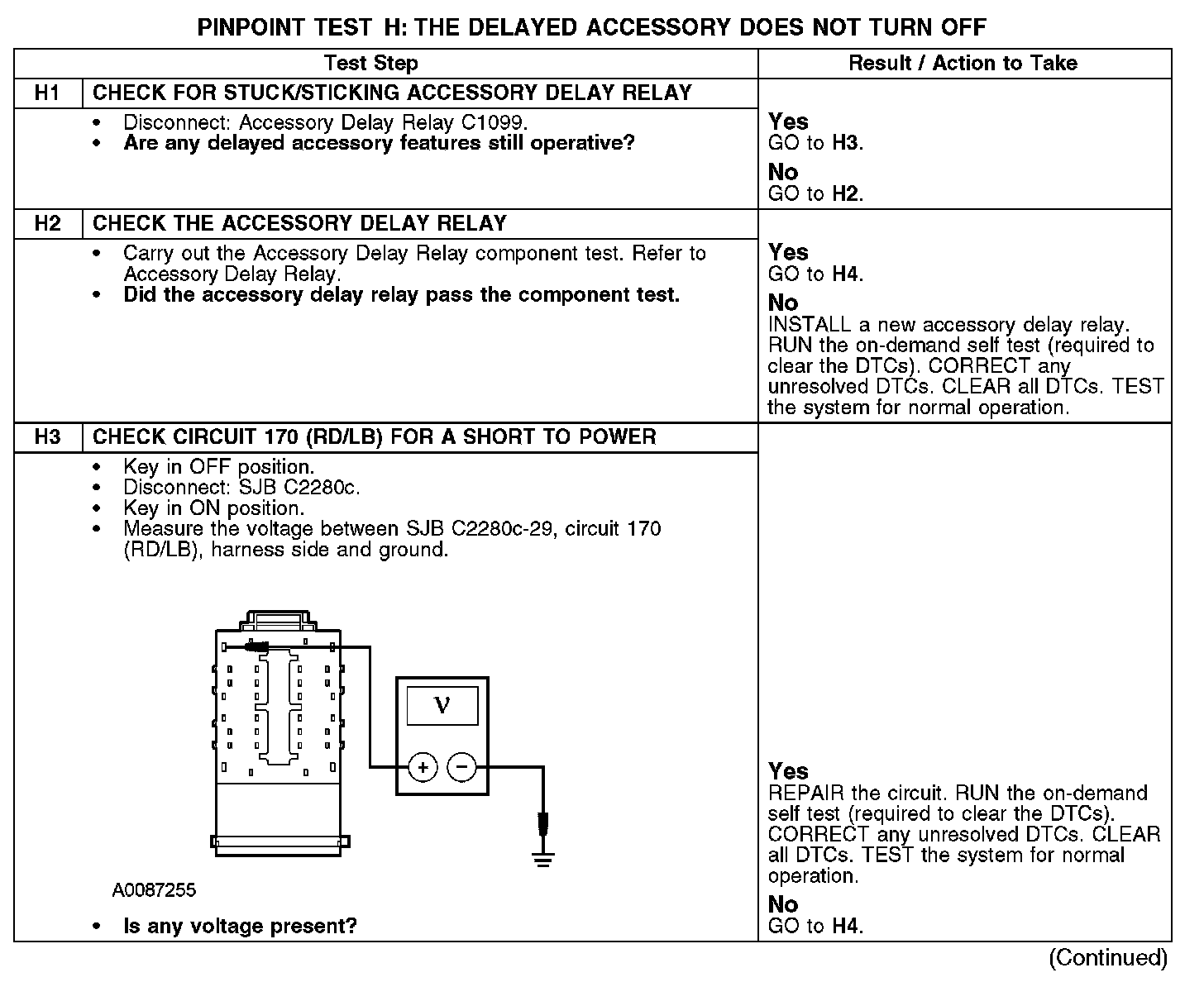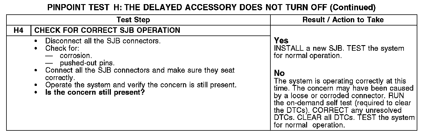 PINPOINT TEST H: THE DELAYED ACCESSORY DOES NOT TURN OFFH1-H3: