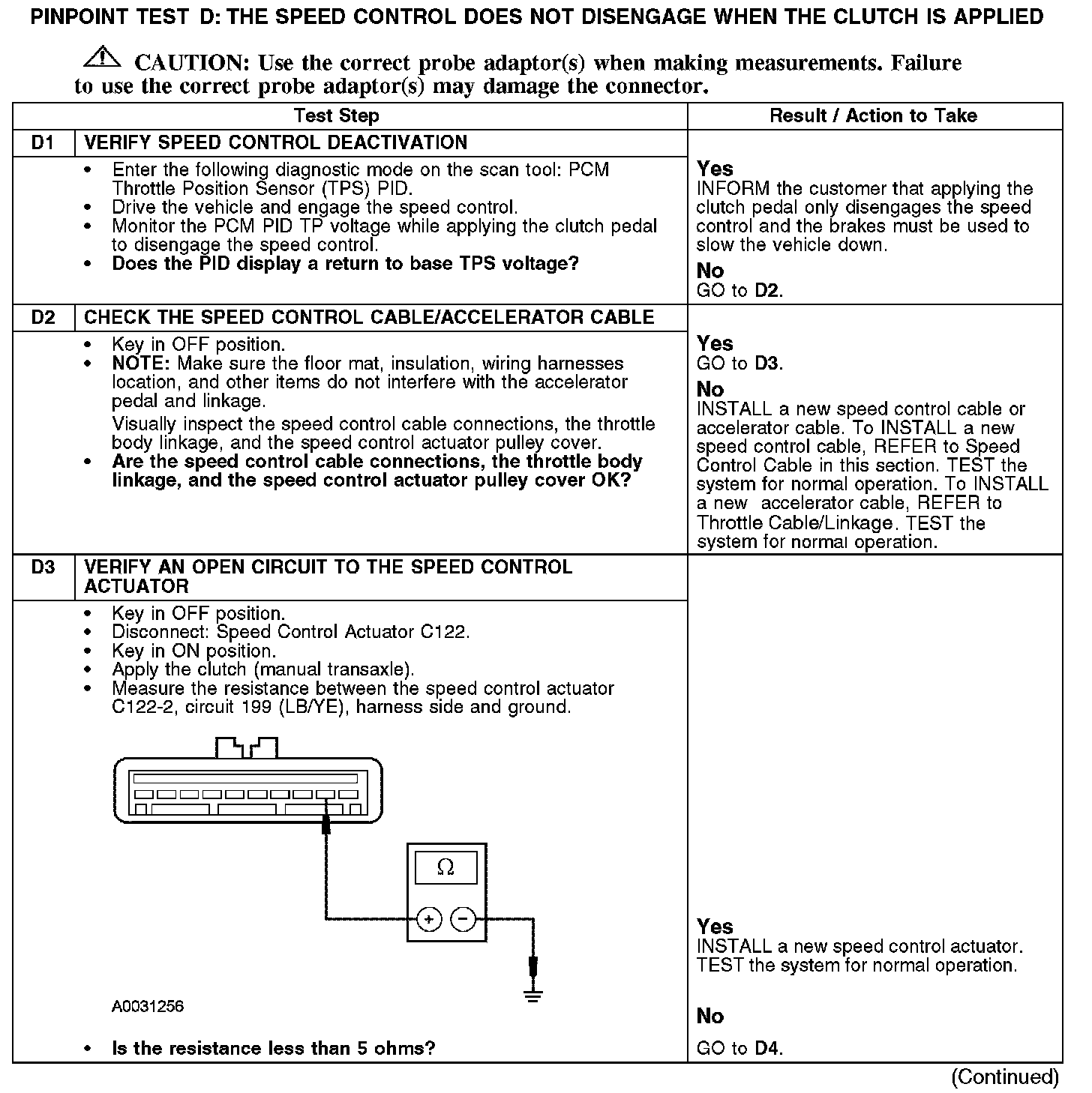 PINPOINT TEST D: THE SPEED CONTROL DOES NOT DISENGAGE WHEN THE CLUTCH IS APPLIEDD1-D3: