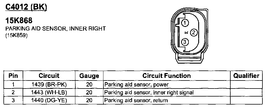 Parking Aid Sensor, Inner Right