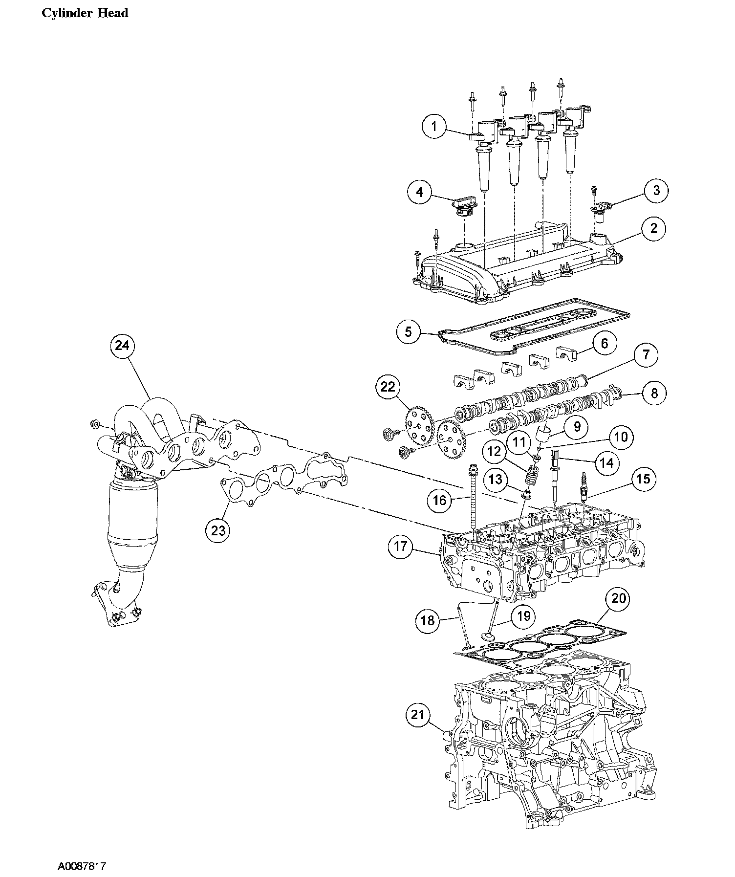 Install the camshafts and bearing caps. Tighten the bolts in the sequence shown in 3 stages: