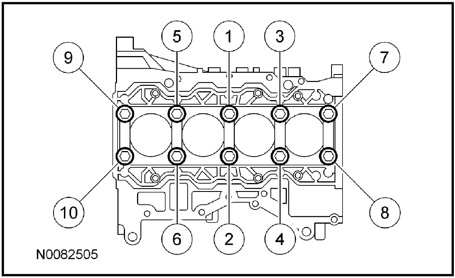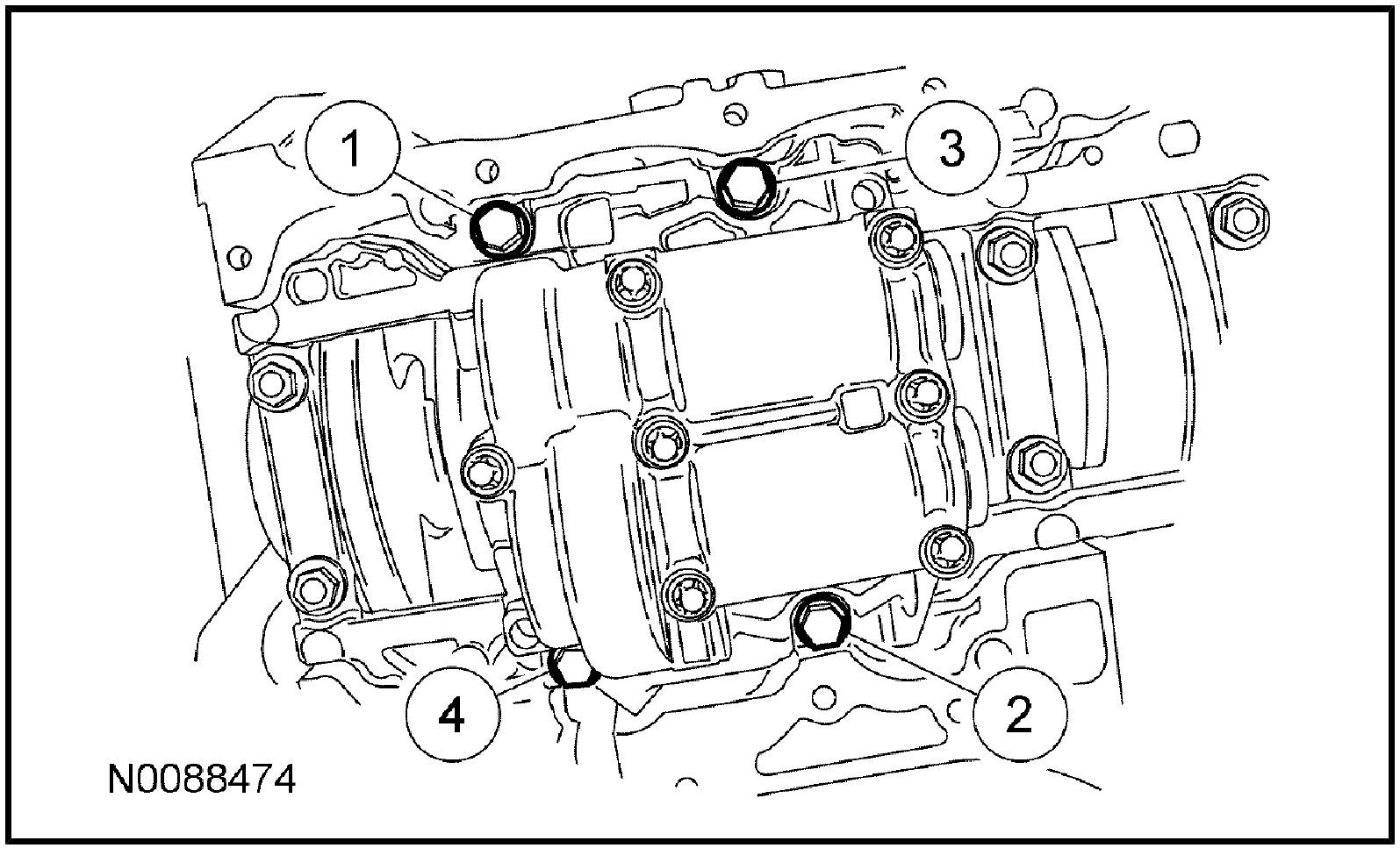 4. Using the original main bearing beam bolts, install and tighten the 10 main bearing beam bolts.