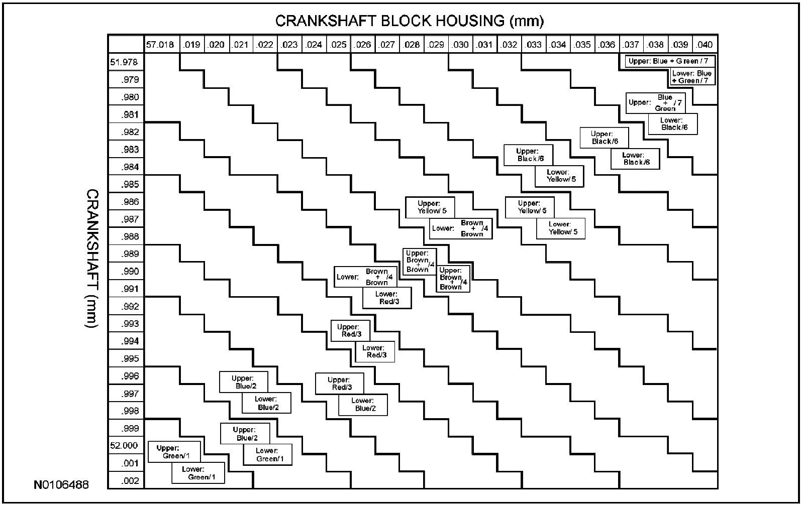 10. Using the chart, select the correct connecting rod bearings for each crankshaft connecting rod journal.