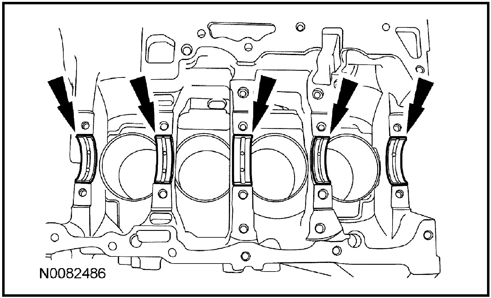 NOTE: If reusing the crankshaft main bearings, install them in their original positions and orientation as noted during disassembly.
