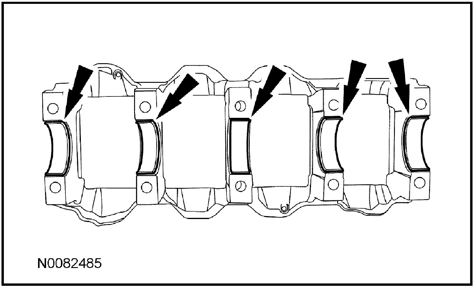 15. Lubricate the 10 main bearing beam side fit surfaces (front 2 shown) with clean engine oil.