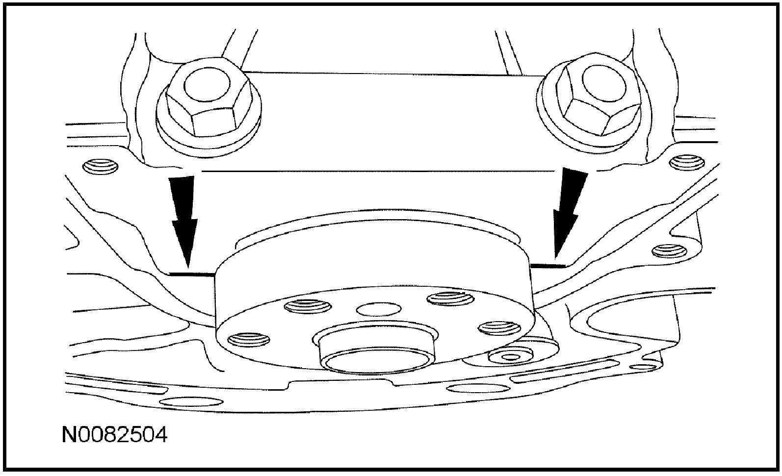 3. Position the main bearing beam in the engine block with the main bearing beam mounted flush with the rear face of the engine block.