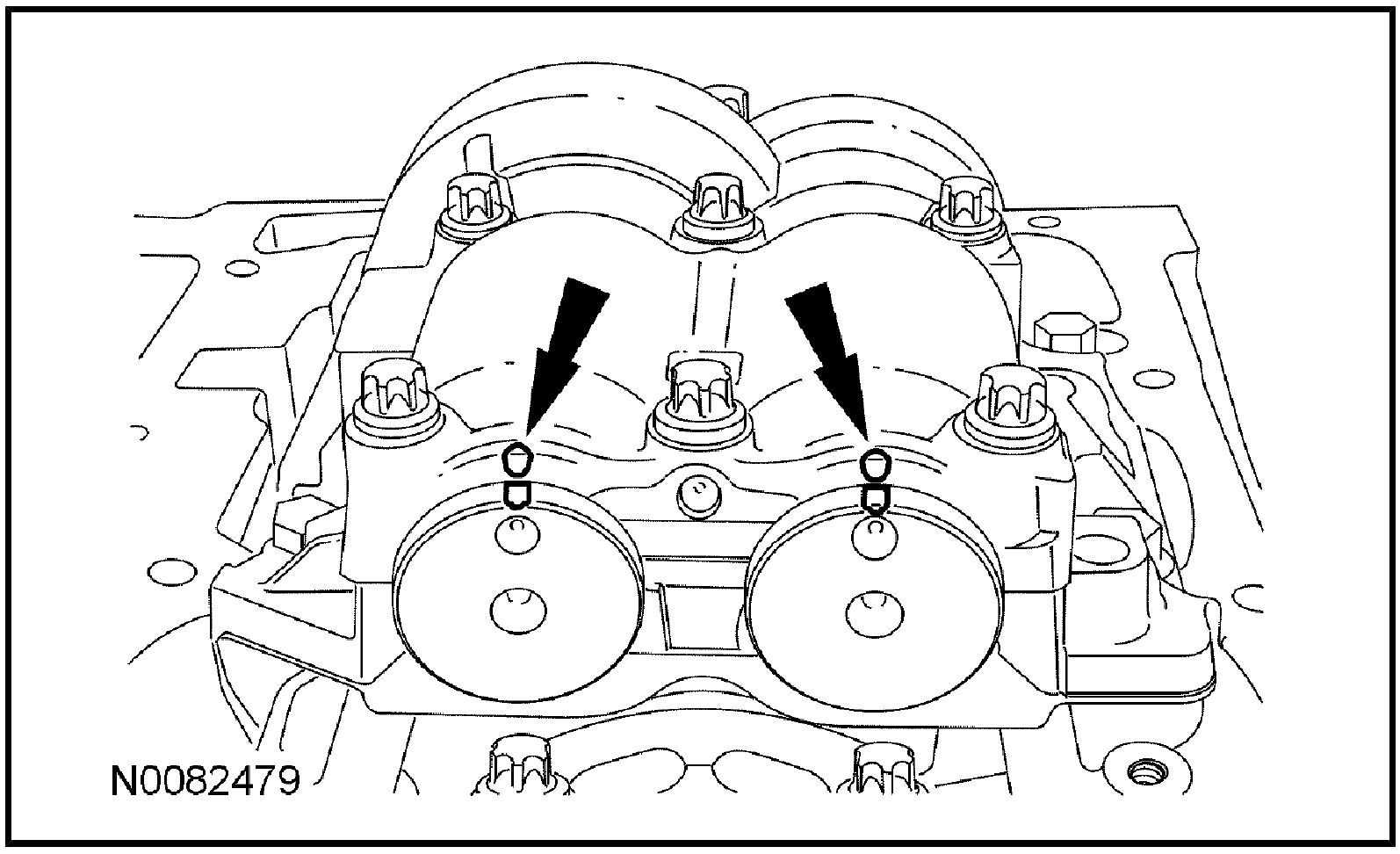 ^ Stage 1: Tighten the camshaft bearing cap bolts one at a time until finger tight.