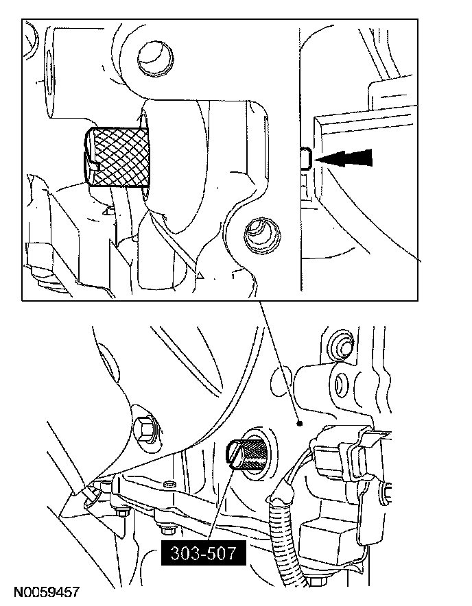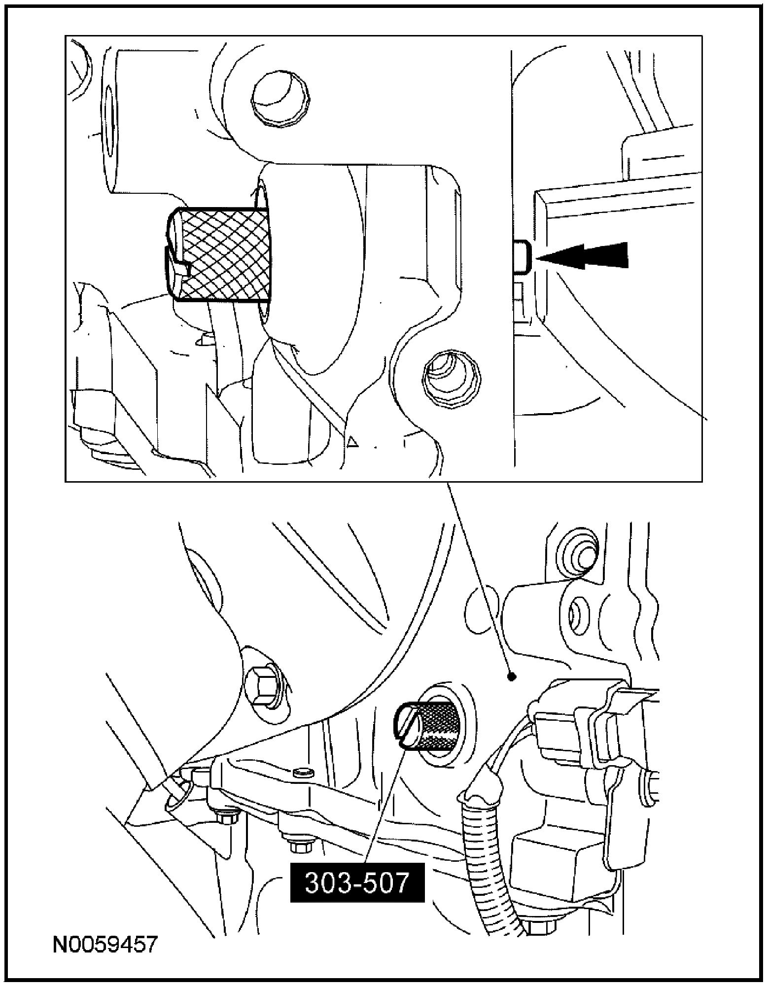 62. CAUTION: The special tool 303-465 is for camshaft alignment only. Using this tool to prevent engine rotation can result in engine damage.