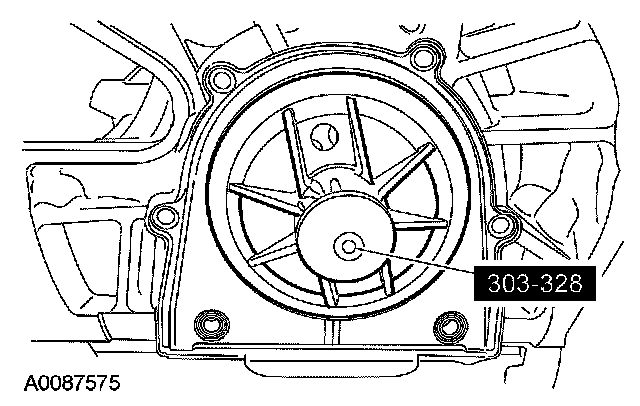 CAUTION: Do not loosen or remove the crankshaft pulley bolt without first installing the special tools as instructed in this procedure. The crankshaft pulley and the crankshaft timing sprocket are not keyed to the crankshaft. The crankshaft, the crankshaft sprocket and the pulley are fitted together by friction, using diamond washers between the flange faces on each part. For that reason, the crankshaft sprocket is also unfastened if you loosen the pulley bolt. Before any repair requiring loosening or removal of the crankshaft pulley bolt, the crankshaft and camshafts must be locked in place by the special service tools, otherwise severe engine damage can occur.