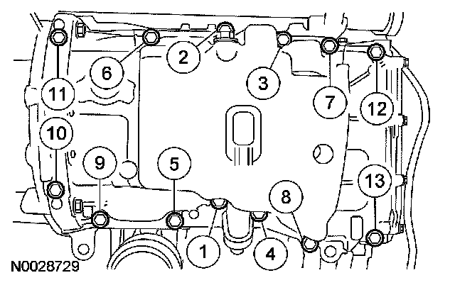 39. Install the remaining oil pan bolts and tighten the oil pan bolts in the sequence shown.