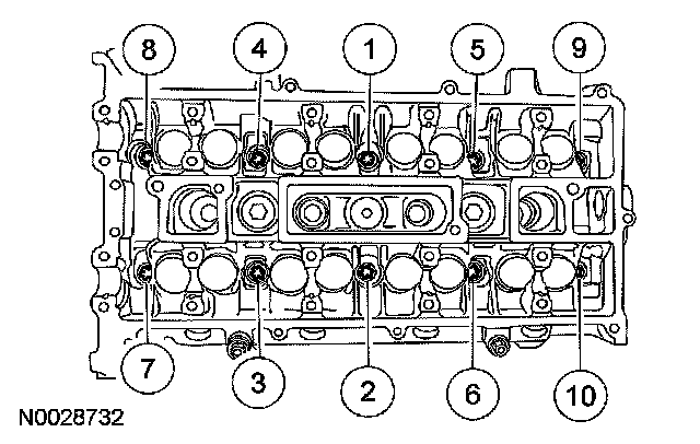 45. NOTE: The cylinder head bolts are torque-to-yield and must not be reused. New cylinder head bolts must be installed.