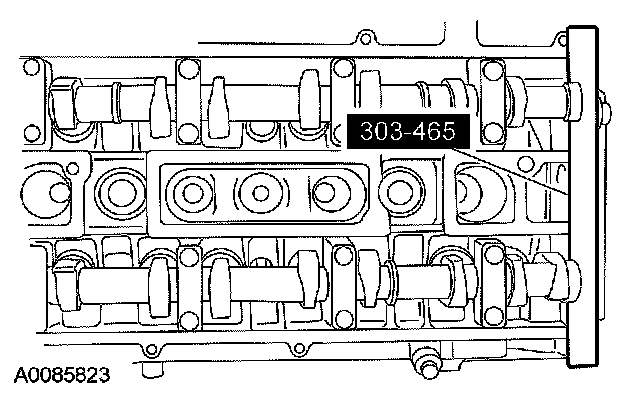 52. CAUTION: The special tool 303-465 is for camshaft alignment only. Using this tool to prevent engine rotation can result in engine damage.
