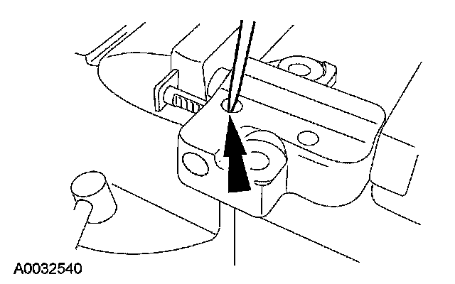 58. Using a small pick, push back and hold the ratchet mechanism.