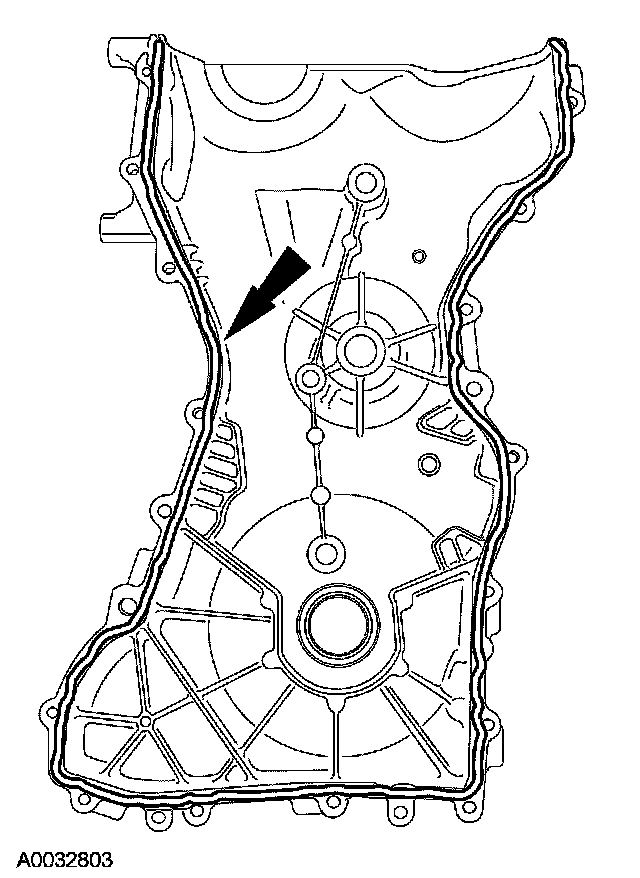 Apply a 2.5 mm (0.09 inch) bead of silicone gasket and sealant to the cylinder head and oil pan joint areas. Apply a 2.5 mm (0.09 inch) bead of silicone gasket and sealant to the front cover.