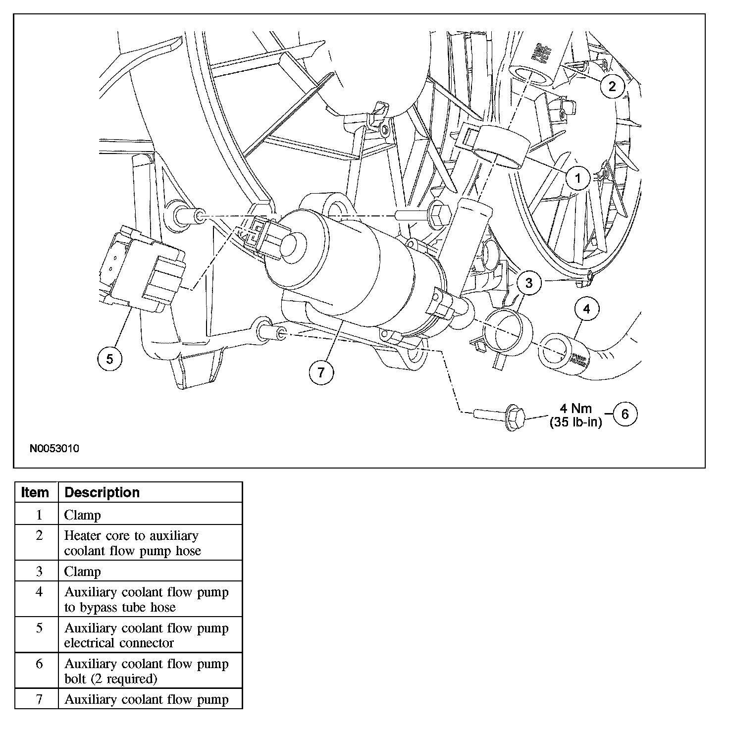 5. Disconnect the auxiliary coolant flow pump electrical connector.