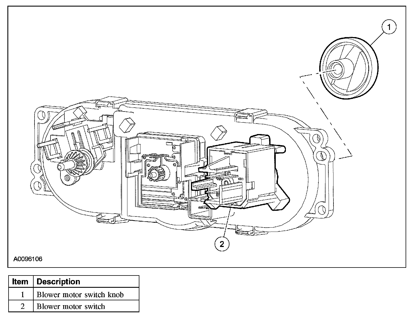 3. Press the tabs simultaneously and remove the blower motor switch.