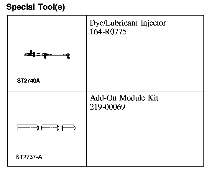 2. Assemble the dye/lubricant injector using the correct adapters to match the amount of PAG oil to be injected.