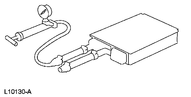 8. If the pressure drops, check the heater water hose connections to the core tubes for leaks. If the heater water hoses do not leak, remove the heater core from the vehicle and carry out the bench test.