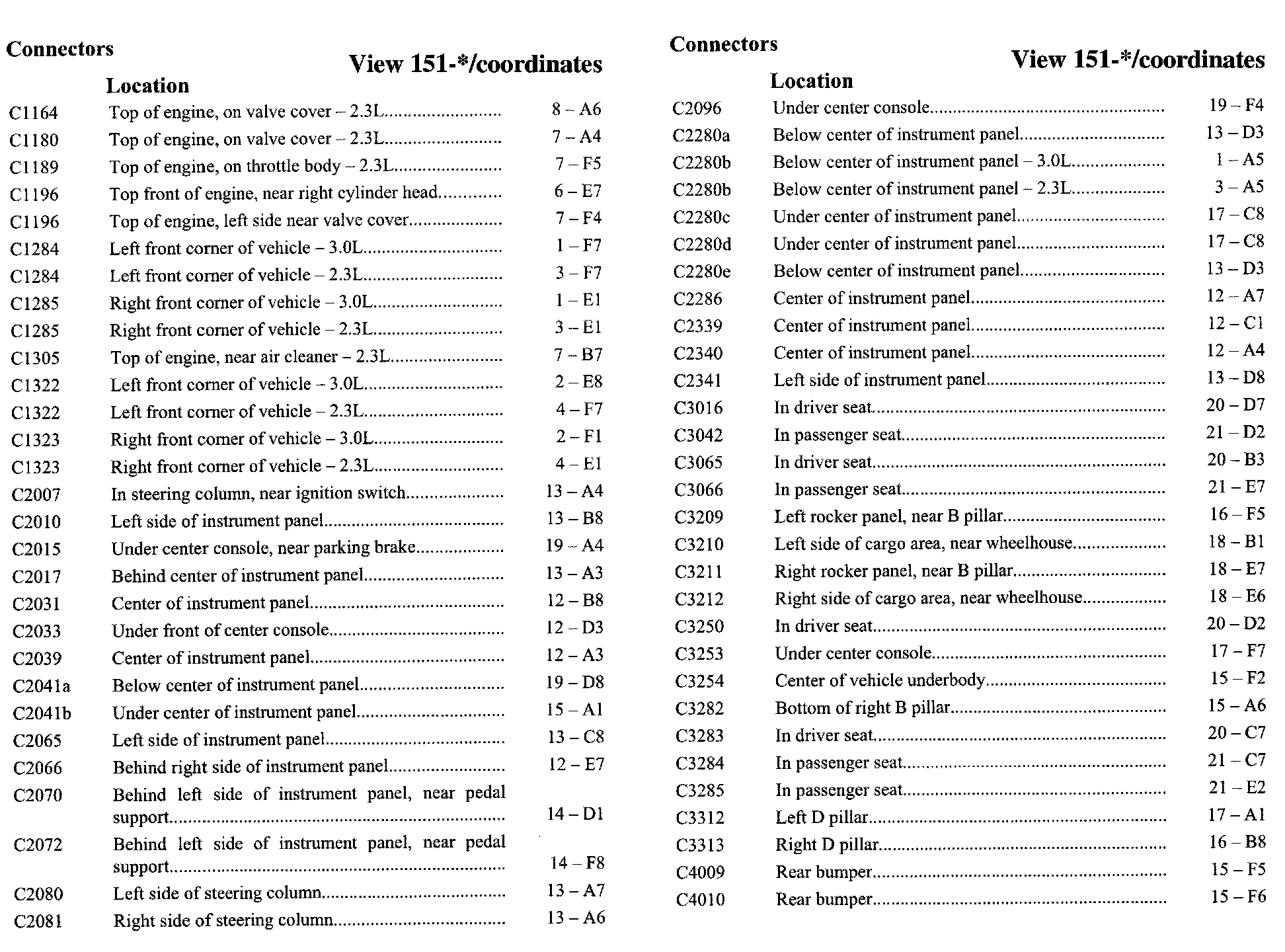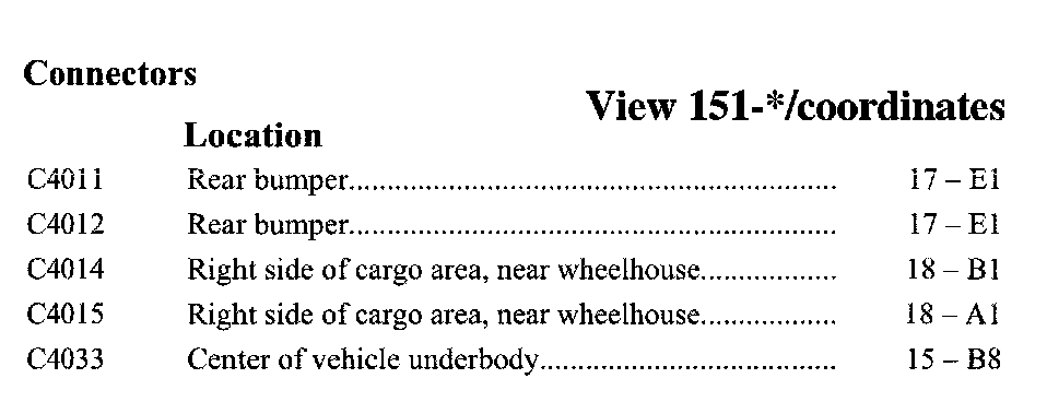 PLEASE NOTE: If a link on the Connector Location Index to a View is not provided, that means that the Connector and/or View in question does NOT apply to the vehicle model selected.