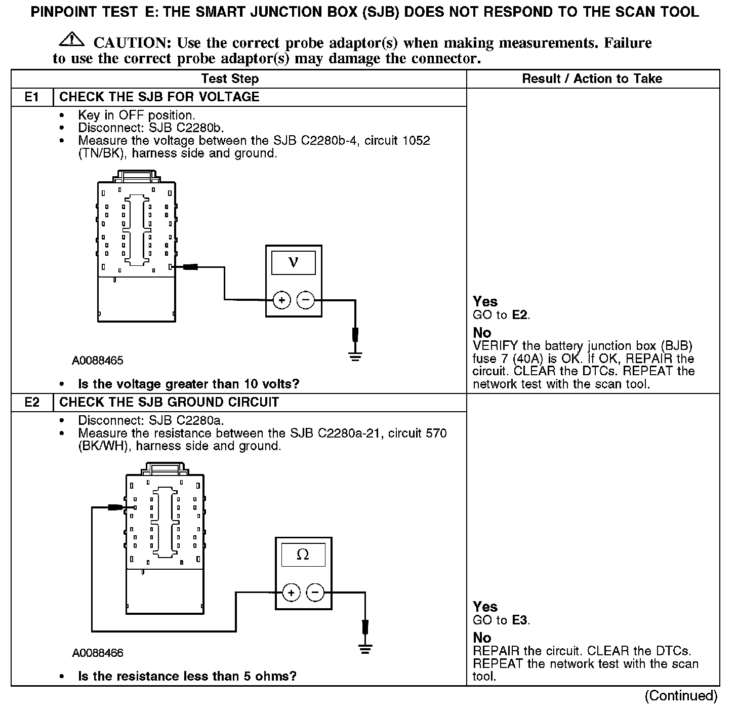 PINPOINT TEST E: THE SMART JUNCTION BOX (SJB) DOES NOT RESPOND TO THE SCAN TOOLE1-E2: