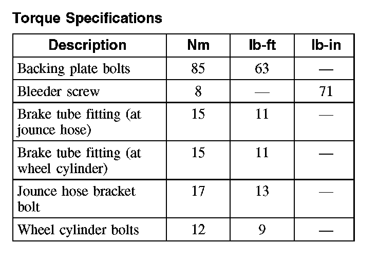 Torque Specifications:
