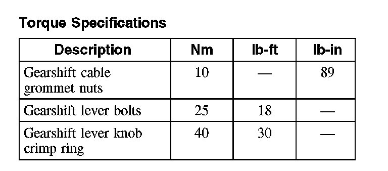 Torque Specifications: