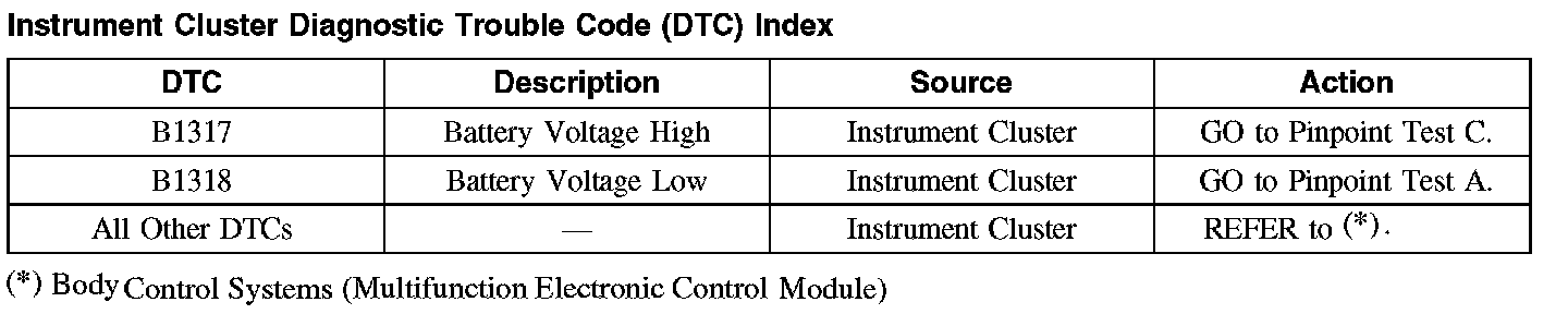 Instrument Cluster Diagnostic Trouble Code (DTC) Index