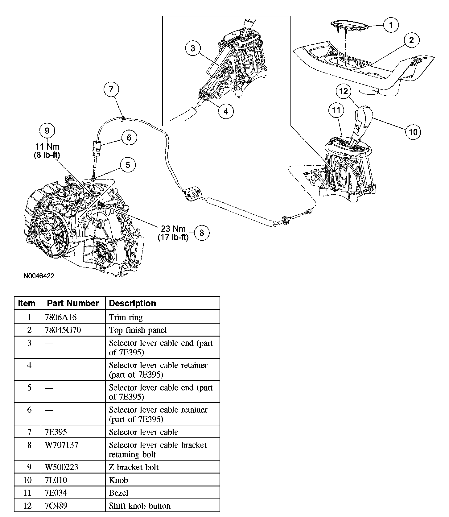 9. Remove the selector lever cable from the selector lever cable bracket.