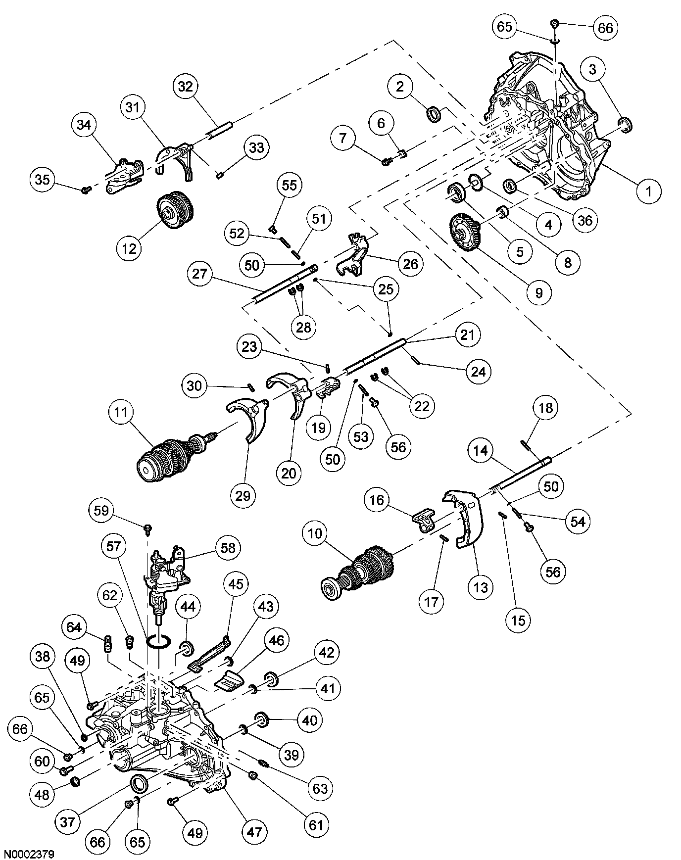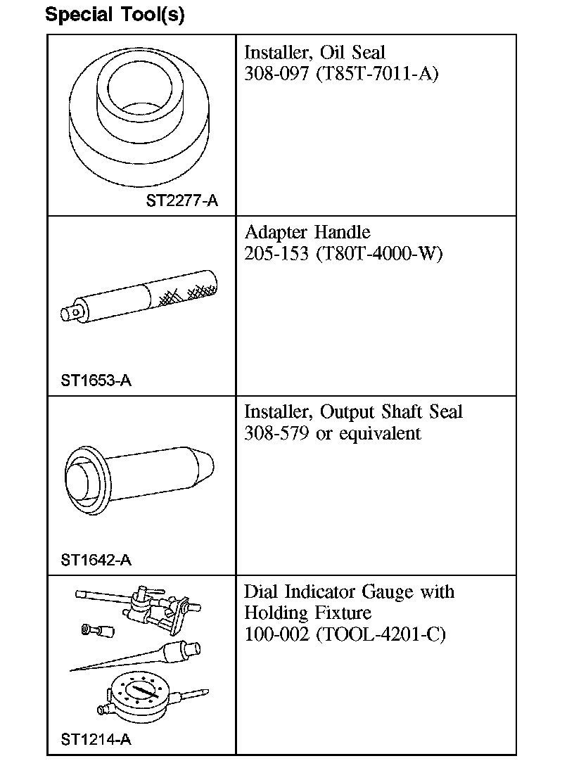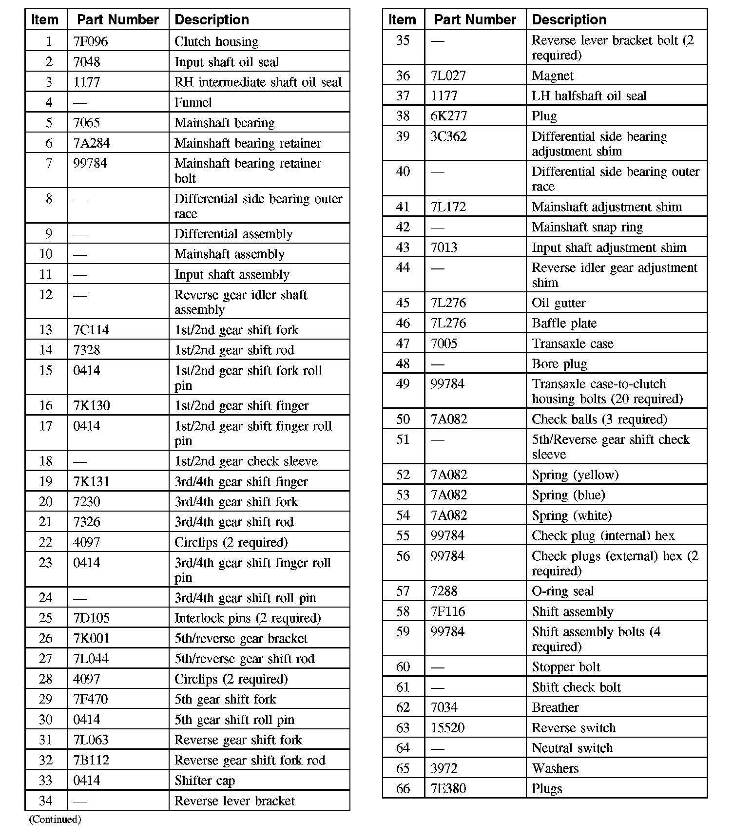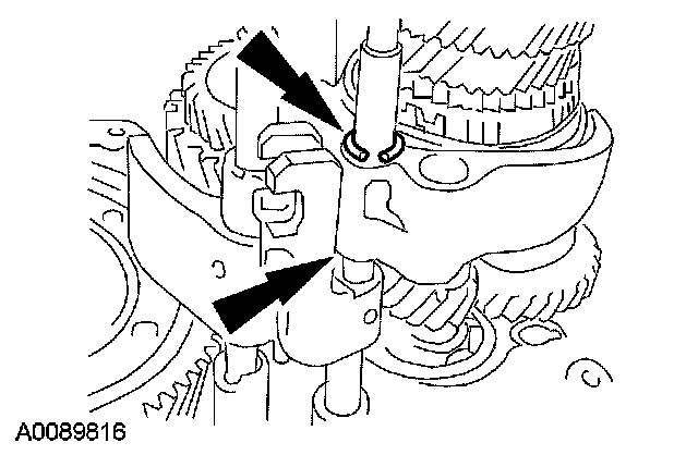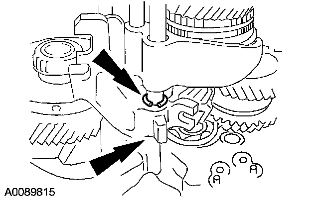 CAUTION: Replace all retaining pins, oil seals, and bearings with new parts or damage to the transaxle may occur.