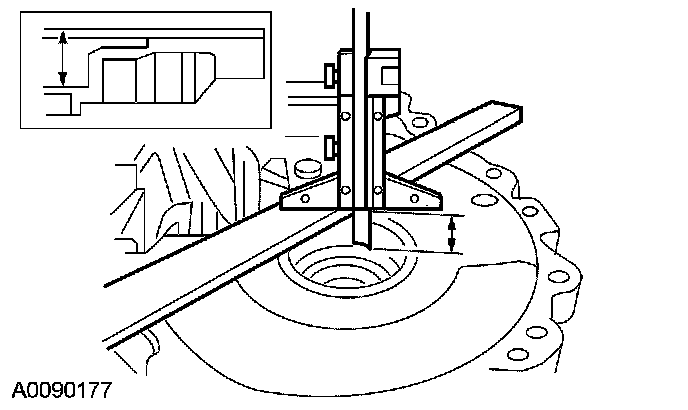 50. Using a depth micrometer and a straight edge, measure and record the depth from the mating surface of the clutch housing to the input shaft bearing outer race outer surface. Record this measurement as L2.