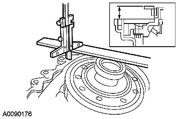 36. Using a depth micrometer and a straight edge, measure and record the depth from the mating surface of the clutch housing to the differential side bearing outer race outer surface. Record this measurement as L2.