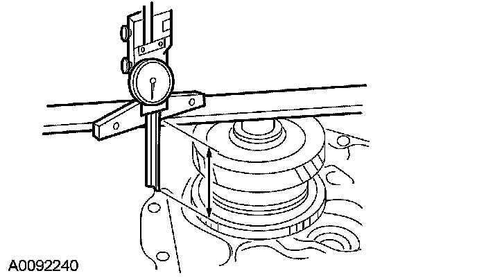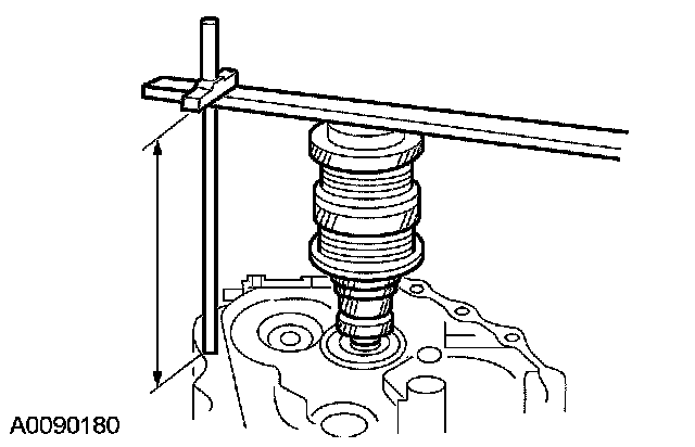 43. Using the special tool, measure and record the depth of the transaxle case to the mainshaft bearing surface when the circlip is expanded and mainshaft is raised to contact the transaxle case.