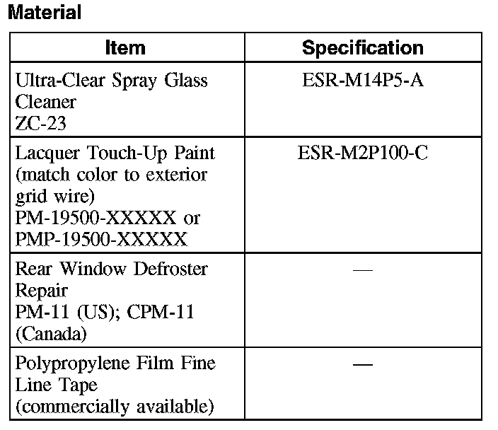 - If the brown color under the grid line is damaged or missing (this is very rare), it will be necessary to apply acrylic lacquer touch-up paint for color match. This paint must meet specification ESR-M2P100-C and should be applied to the glass prior to applying the rear window defroster repair compound.