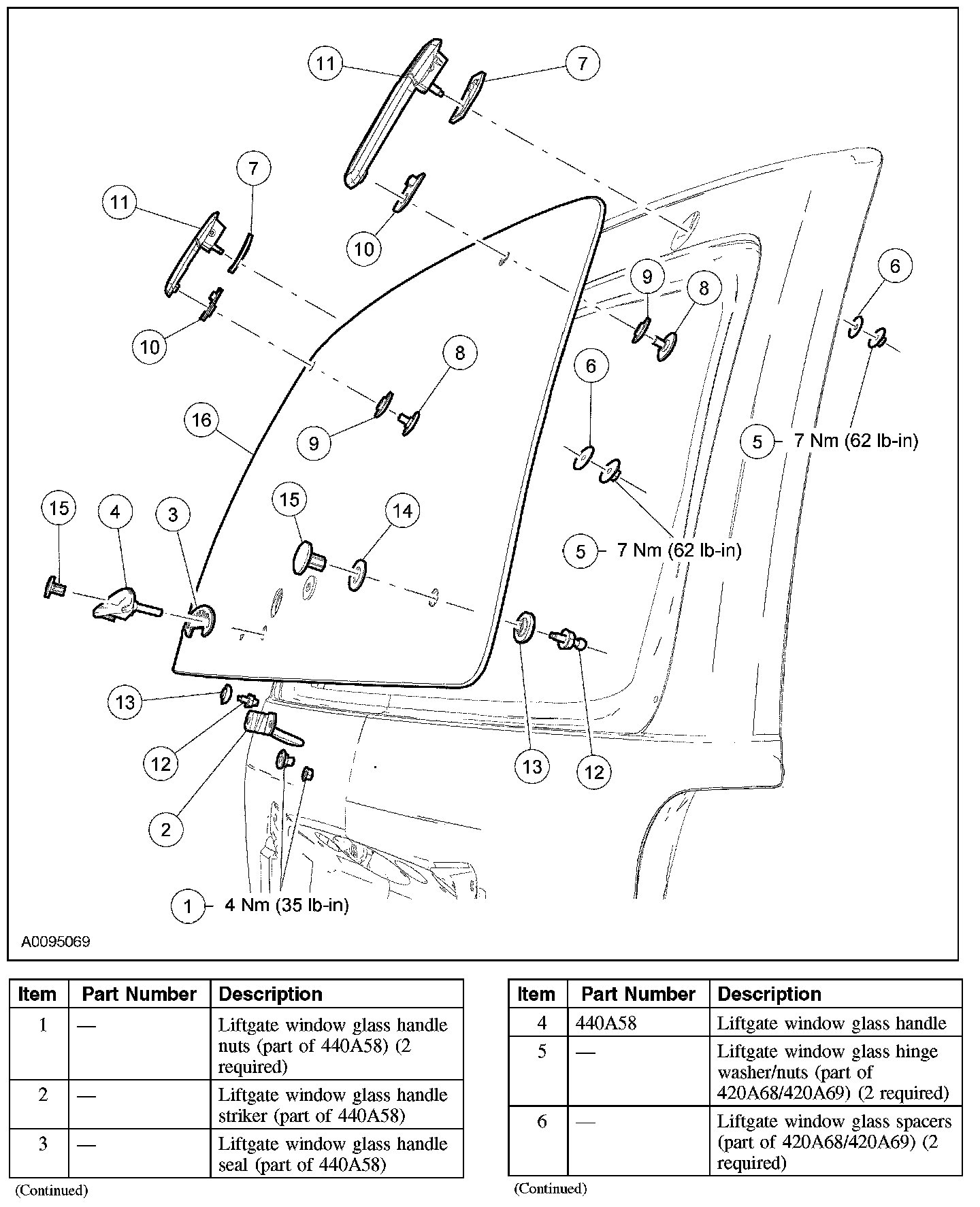 Remove the 2 liftgate window glass hinge nuts and the liftgate window glass.