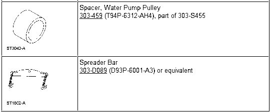 35. CAUTION: Failure to use the correct special tools, assembled as shown in the illustration, will result in damage to the coolant pump pulley and/or special tools.