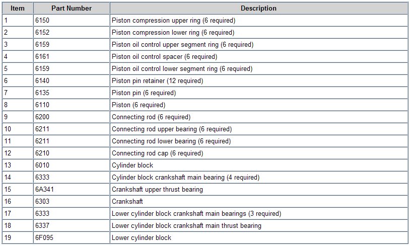 ^ For example: If the block code is *0609*0711* and the crankshaft code is *8580*8082*, main No. 1 should use grade 1 bearings, as determined by the intersection of the 06 block column and the 85 crankshaft row. Mains 2, 3 and 4 should all be grade 2.